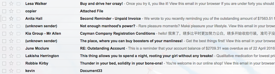 So it got me wondering what the sender’s name and subject line of a successful spam email might look like.