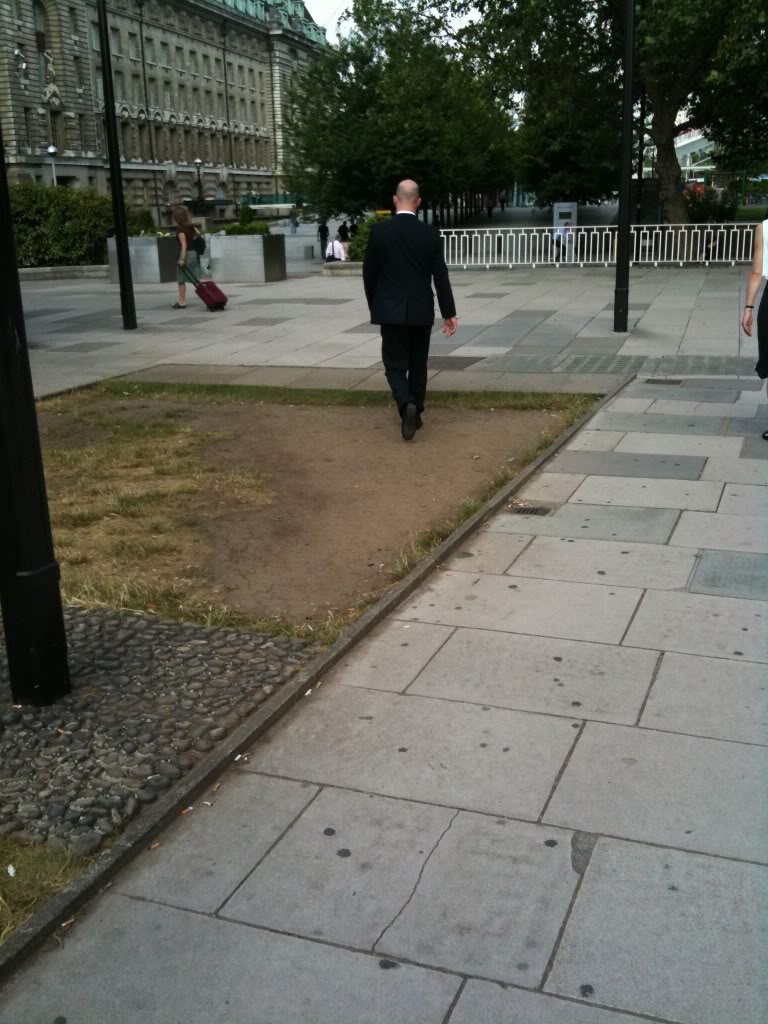 Cutting corners: commuters shaving nanoseconds off their journey have killed the grass. That and no rainfall.