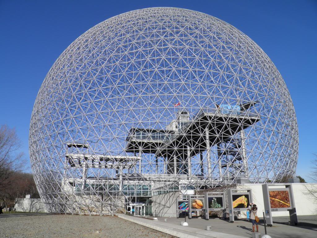 A strong yet lightweight structure consisting of a lattice of interlocking icosahedrons, patented (but not invented) in 1954 by American hippy hero R Buckminster Fuller. The best examples in the UK can be seen at Cornwall’s Eden Project.